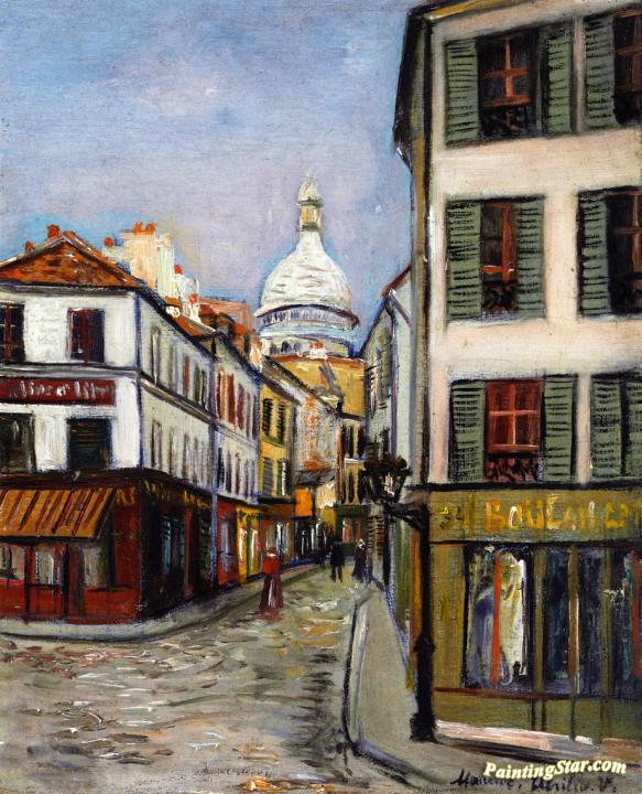 Rue Norvins and Sacre Coeur, Art Painting by Maurice Utrillo