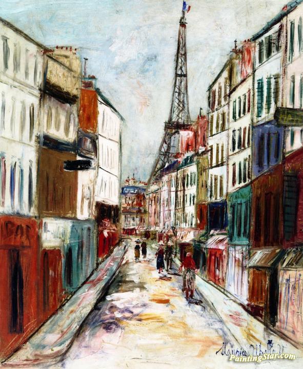 Rue Saint-Doinique and the Eiffel Tower, Art Painting by Maurice Utrillo
