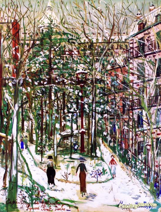 Sacré-Coeur de Montmartre and the Square Saint-Pierre, Art Painting by Maurice Utrillo