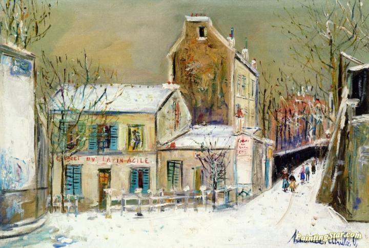 The Lapin Agile, Snow Effect, Art Painting by Maurice Utrillo