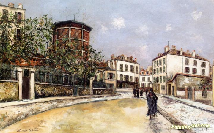 The Old Reservoir in Montmartre, Place Jean-Baptiste Clement, Art Painting by Maurice Utrillo