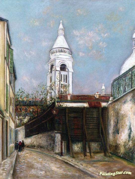 The Rue Saint-Vincent and Sacré-Coeur, Art Painting by Maurice Utrillo