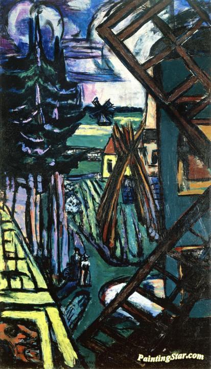 Landscape with Windmill, Art Painting by Max Beckmann