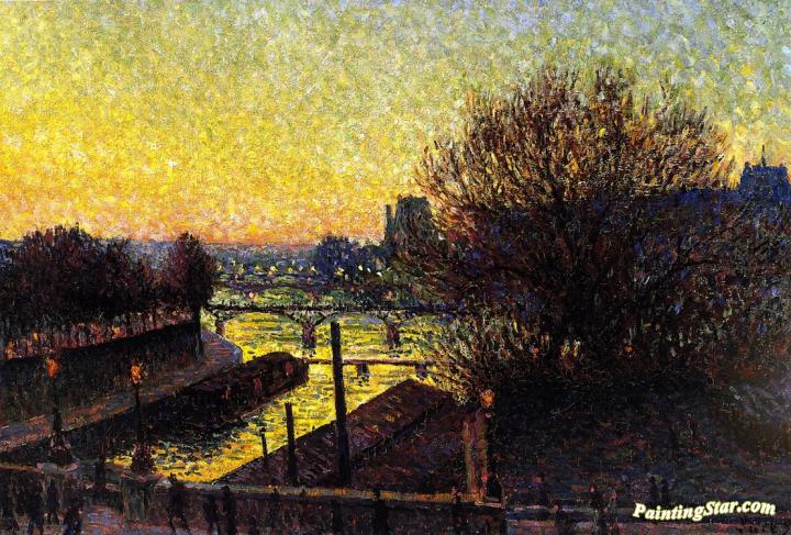 Paris, View of the Seine, Night, Art Painting by Maximilien Luce