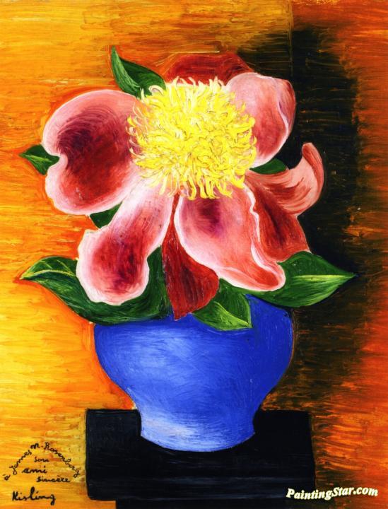 Flowers in a Blue Vase, Art Painting by Moise Kisling