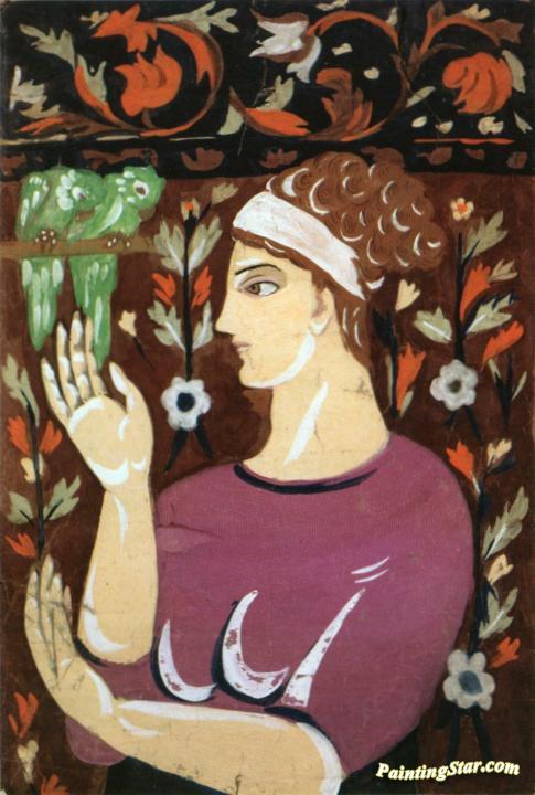 Woman with Parrot, Art Painting by Natalia Goncharova