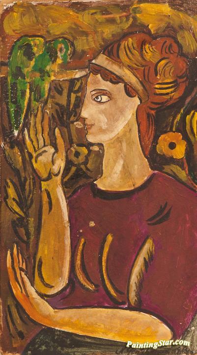 Woman with Parrot (study), Art Painting by Natalia Goncharova