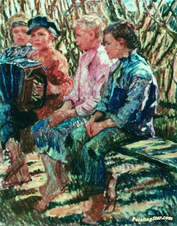 Merry Company, Art Painting by Nikolai Petrovich Bogdanov-belsky