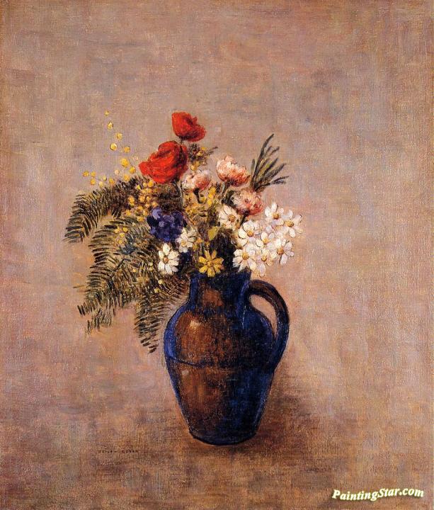 Bouquet of Flowers in a Blue Vase, Art Painting by Odilon Redon