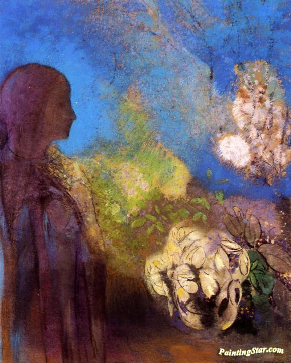 Girl with Chrysanthemums, Art Painting by Odilon Redon