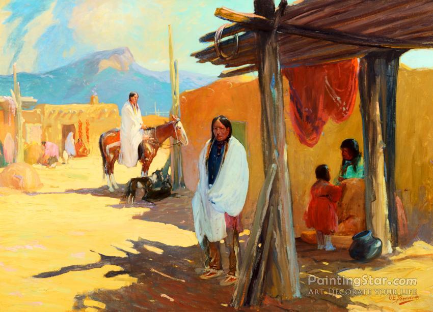 Morning Shade, Taos Pueblo, Art Painting by Oscar Berninghaus