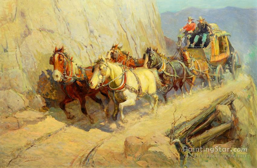 Stagecoach, Circa 1920, Art Painting by Oscar Berninghaus