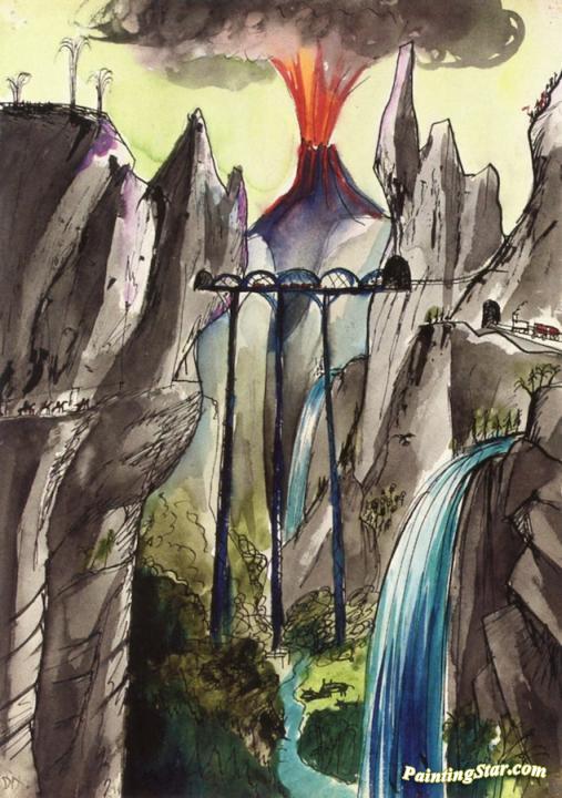 Picture Book for 'Muggeli' 14 (Mountains with Erupting Volcano), Art Painting by Otto Dix