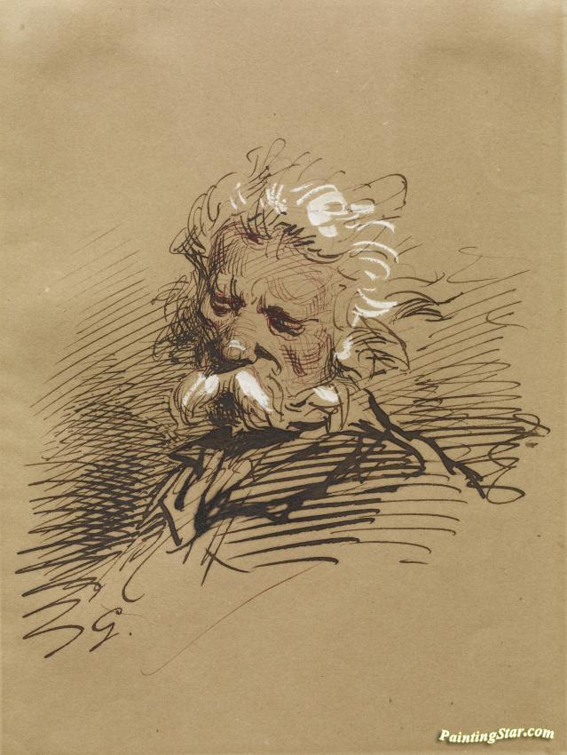 Head Of An Old Man, Art Painting by Paul Gavarni