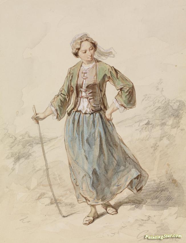 Peasant Girl, Art Painting by Paul Gavarni