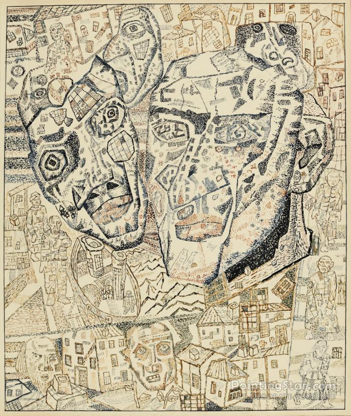 Composition With Two Heads, Art Painting by Pavel Filonov