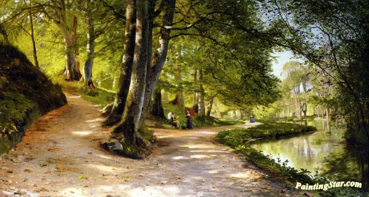 The Red Umbrella, Art Painting by Peder Mork Monsted