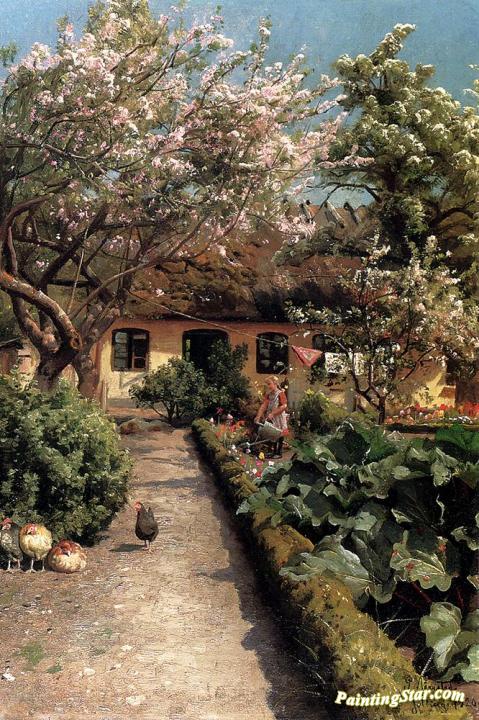 Watering The Garden, Art Painting by Peder Mork Monsted