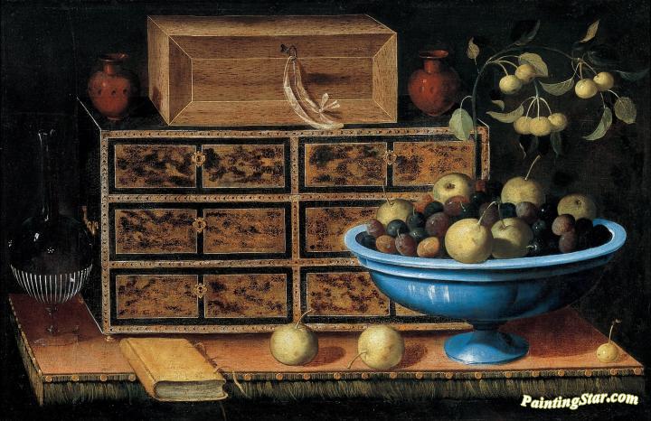 Writing Desk with a small Chest and a Fruit Bowl, Art Painting by Pedro de Camprobin