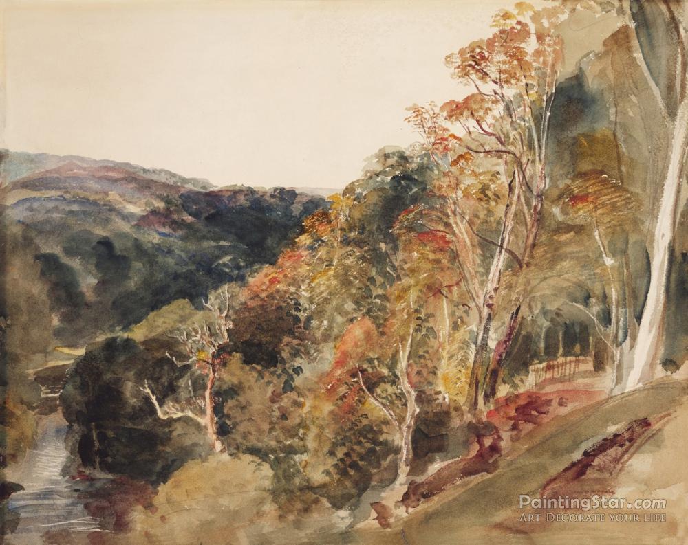 Wooded Hills Descending To A Valley Near Lowther, Westmoreland, Art Painting by Peter de Wint