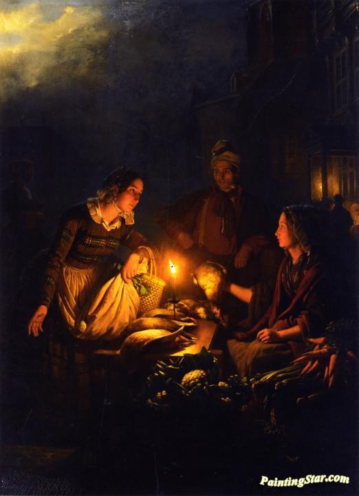 Moonlit Market In The Hague, Art Painting by Petrus van Schendel
