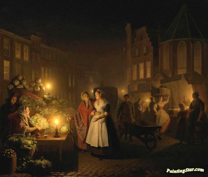 Moonlit Market, Art Painting by Petrus van Schendel