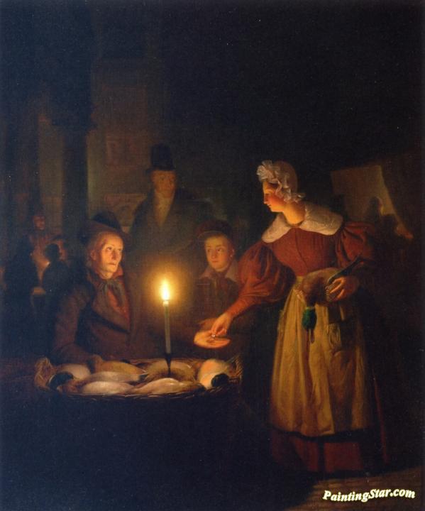 The Poultry Seller, Art Painting by Petrus van Schendel