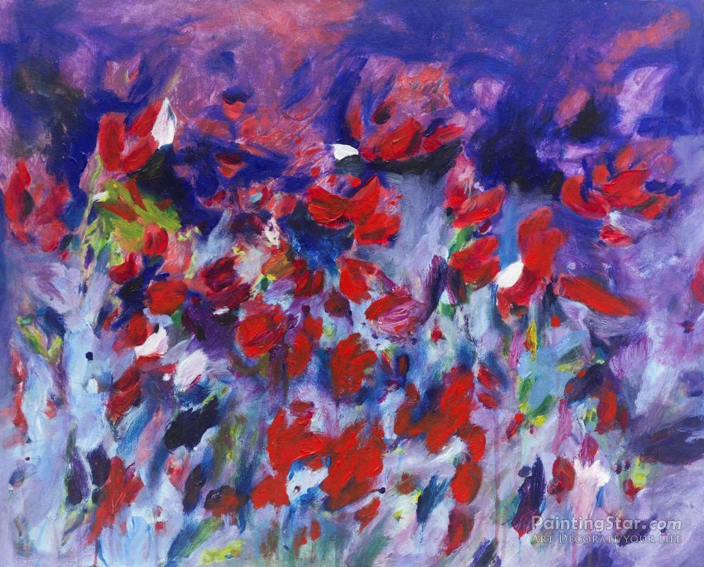 Abstract Red, Pink, And Purple Flower Garden, 2020, Art Painting by Phillip Jones