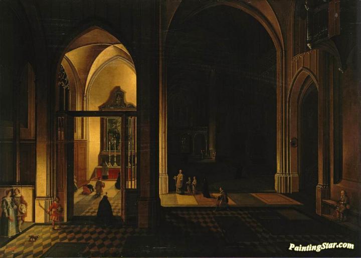 Interior of a Gothic Church, Art Painting by Pieter Neefs the Elder