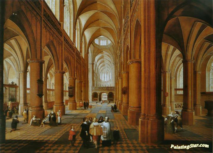 Interior of a Gothic Church, Art Painting by Pieter Neefs the Elder