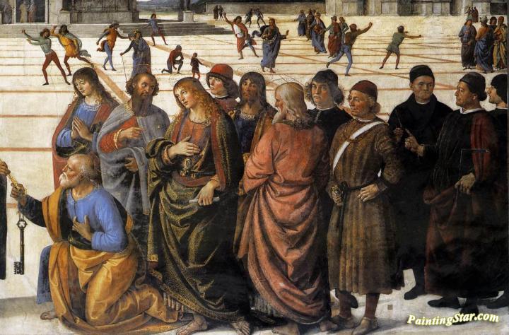 Christ Handing the Keys to St Peter (detail), Art Painting by Pietro Perugino