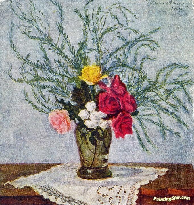 Roses and asparagus, Art Painting by Pyotr Konchalovsky
