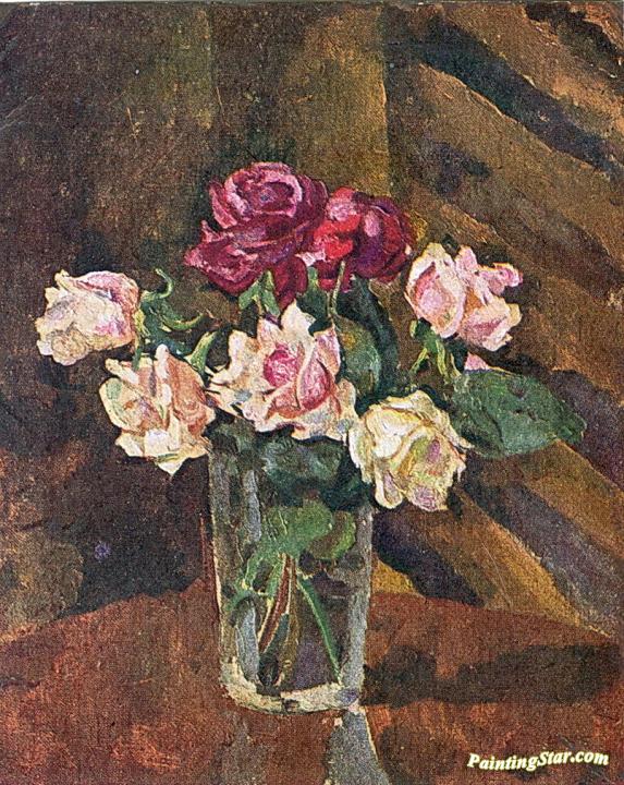 Roses in a Glass, Art Painting by Pyotr Konchalovsky