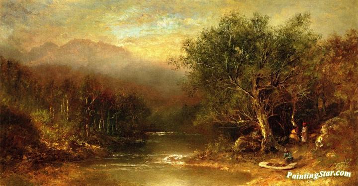 Landscape With Figures And Boat, Art Painting by Ralph Albert Blakelock