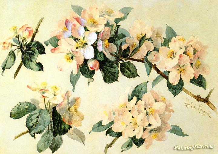 Apple Blossoms with Hummingbird and Bumblebees, Art Painting by Raoul de Longpre