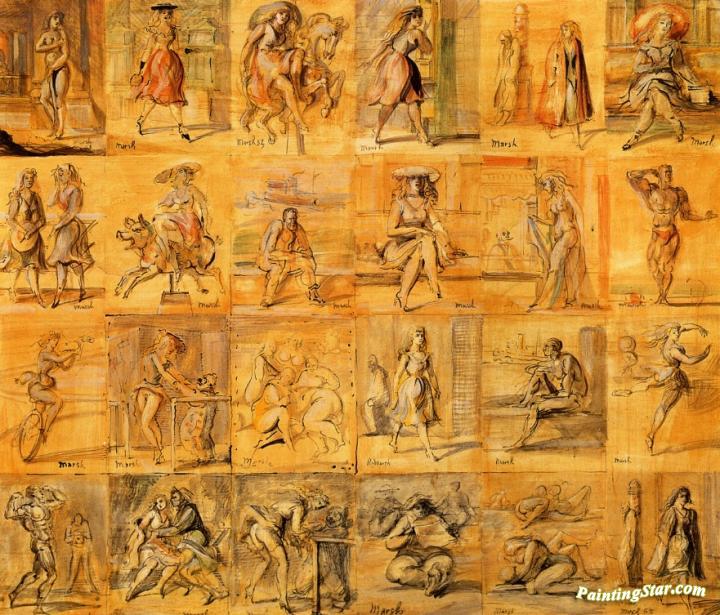 Group Of Twenty-four Card Designs, Art Painting by Reginald Marsh