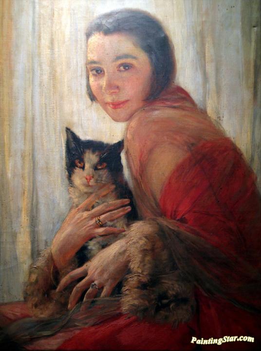 Girl with Cat, Art Painting by Robert Auer
