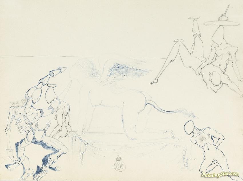 Sphinge Et Figures Rhinocerontiques, Art Painting by Salvador Dalí