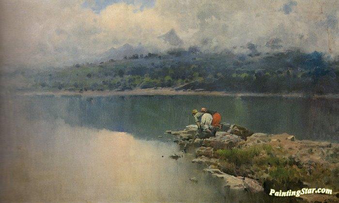 River With Women Washing, Ca. 1899, Art Painting by Segundo Matilla Marina