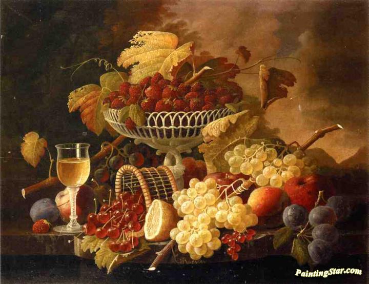 Still Life with Fruit and Wine Glass, Art Painting by Severin Roesen