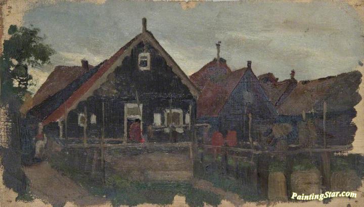 Sketch of Wooden Houses (Holland), Art Painting by Sir George Clausen