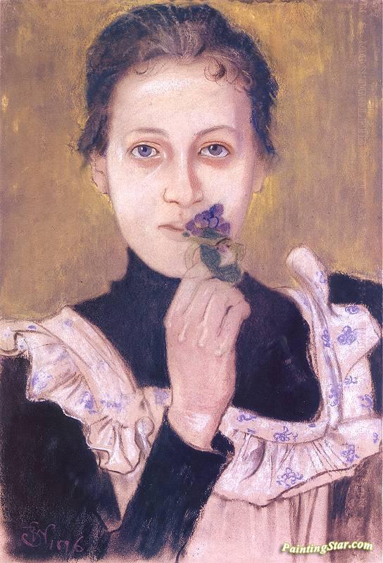Girl With Violets, Art Painting by Stanislaw Wyspianski