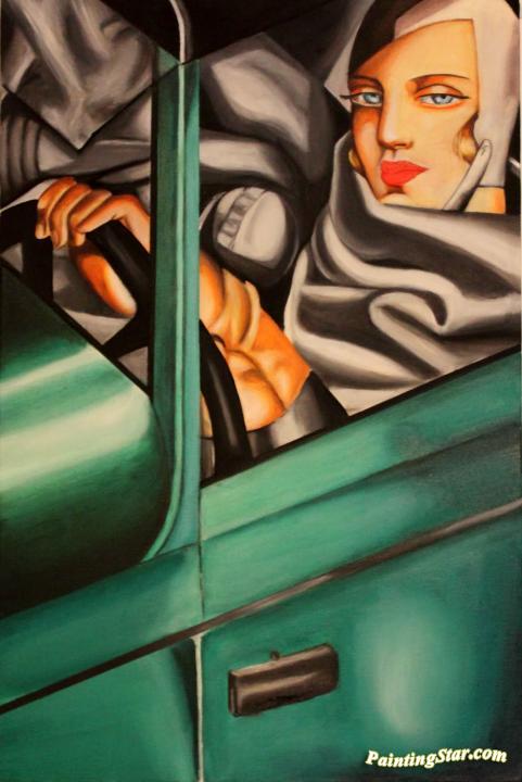 Self-portrait In The Green Bugatti, Art Painting by Tamara De Lempicka