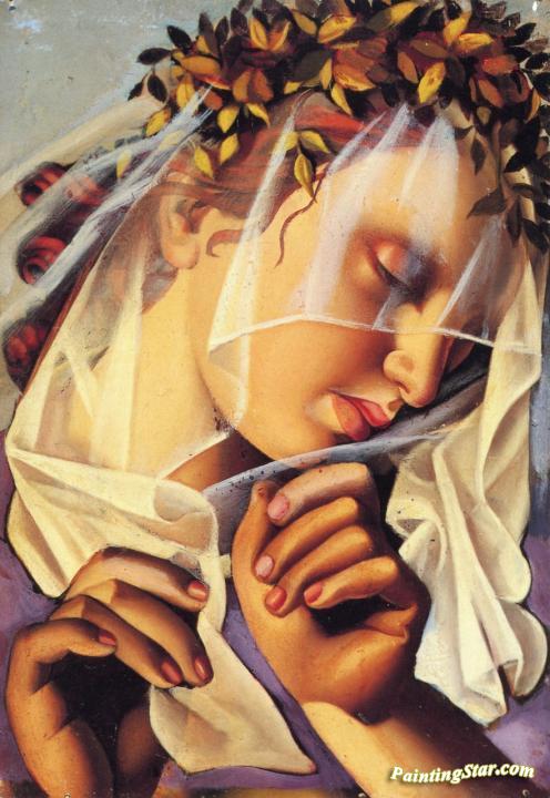 Woman with a Garland of Flowers, Art Painting by Tamara De Lempicka