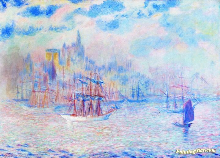 Ships in New York Harbor, Art Painting by Theodore Earl Butler