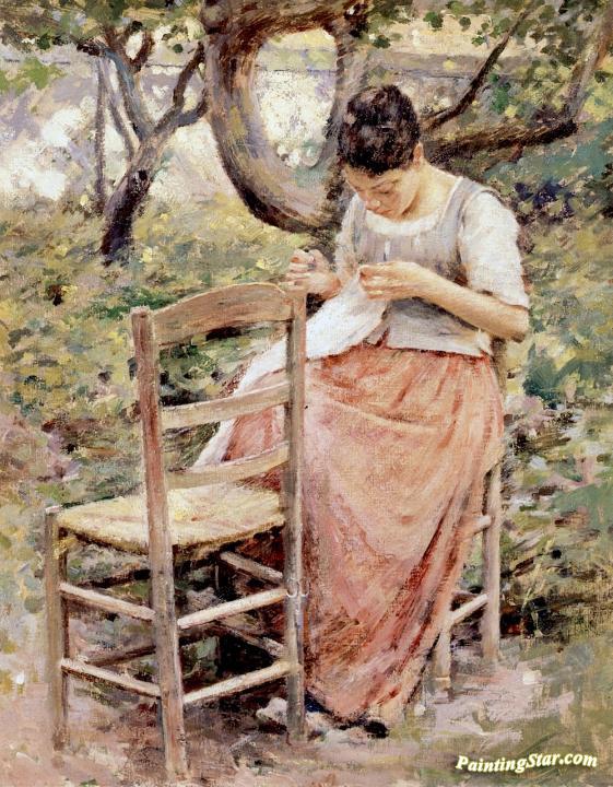 Girl Sewing, Art Painting by Theodore Robinson