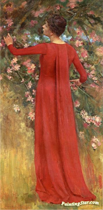 The Red Gown, Art Painting by Theodore Robinson