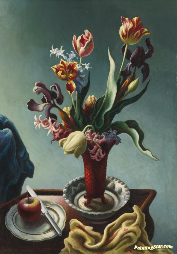 Still Life With Spring Flowers, Art Painting by Thomas Hart Benton