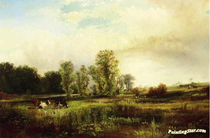 Summer Landscape with Cows, Art Painting by Thomas Moran