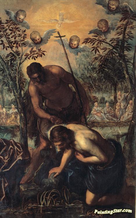 The Baptism Of Christ, Art Painting by Tintoretto Jacopo